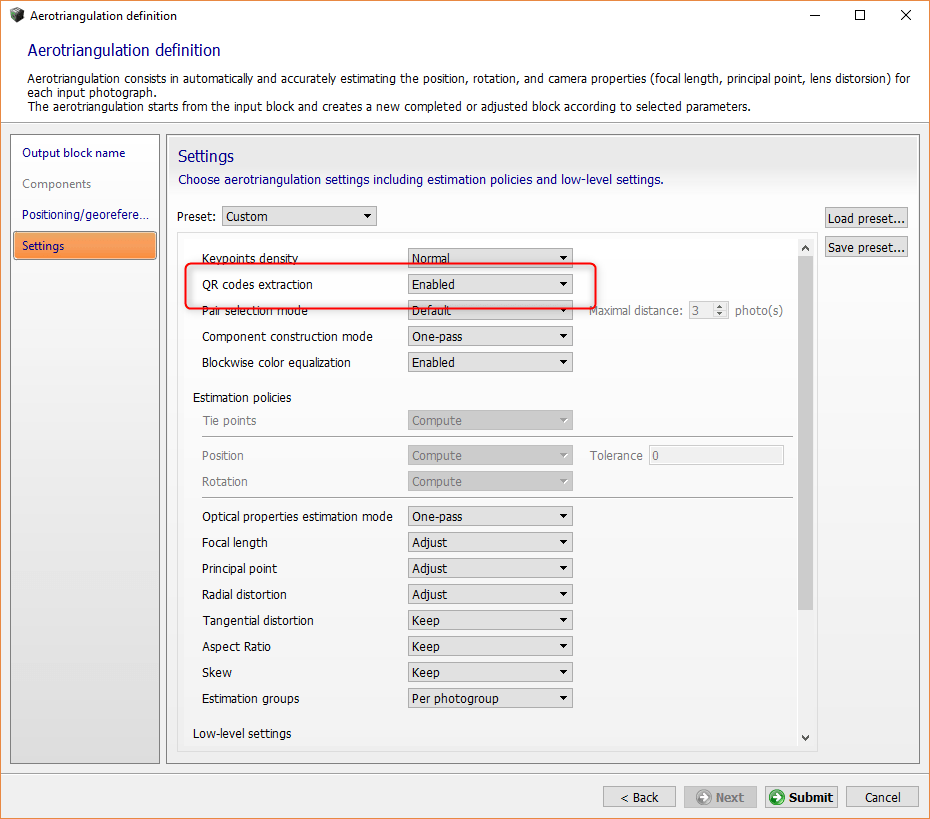 Lors de la phase d’aérotriangulation, on demandera à ce que les QR codes soient détectés. Ils seront mis en corrélation avec les points de contrôles précédemment introduits.