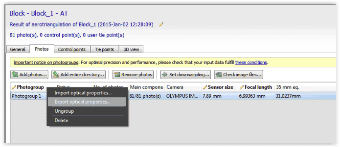 Export and import the optical properties of the camera into iTwin Capture Modeler